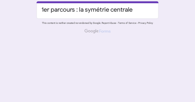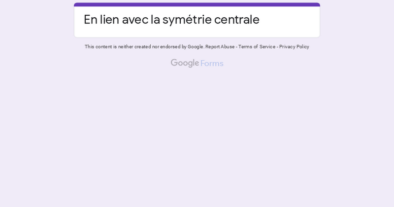 1er parcours : la symétrie centrale Next Never submit passwords through Google Forms. This content is neither created nor endorsed by Google. Report Abuse - Terms of Service - Privacy Policy Forms